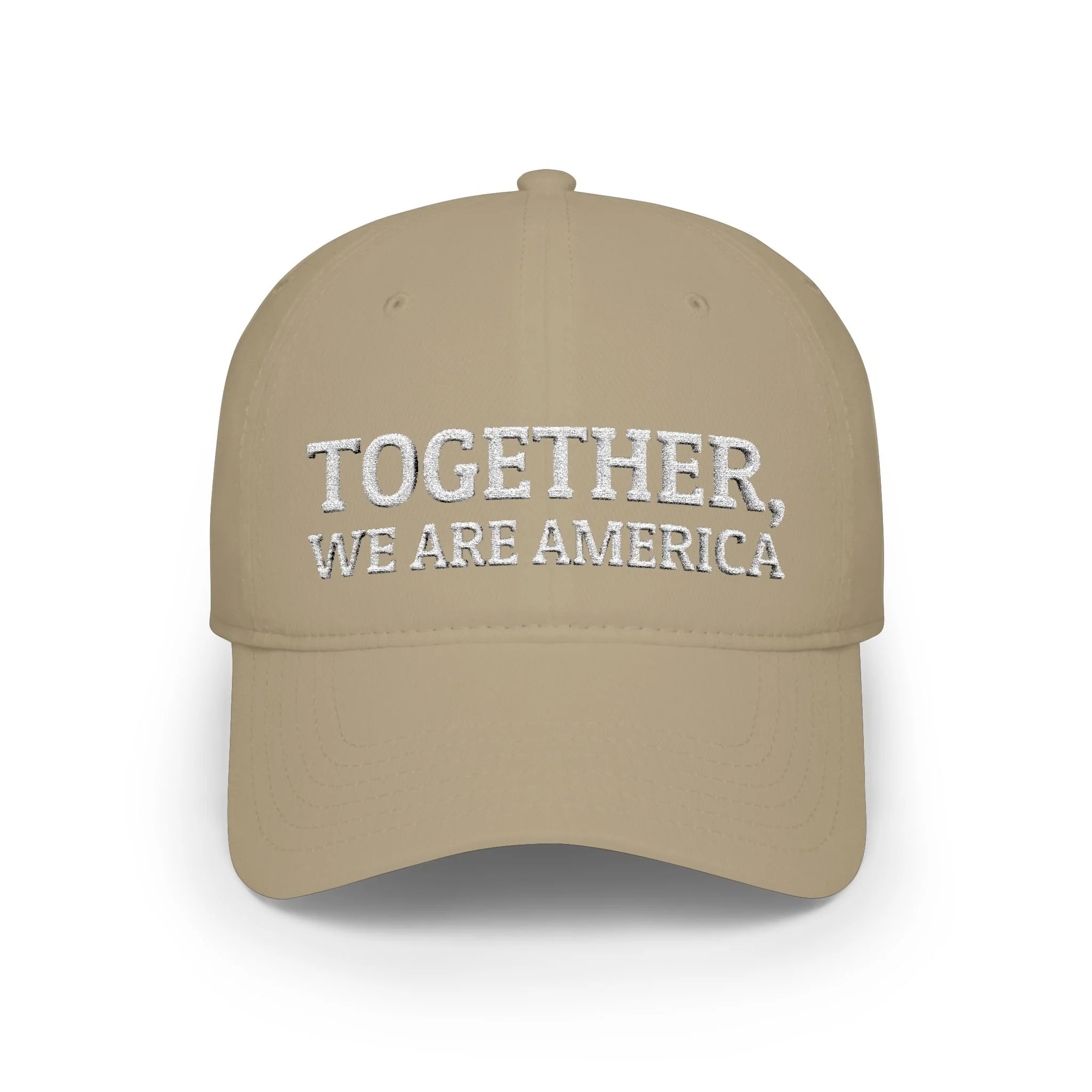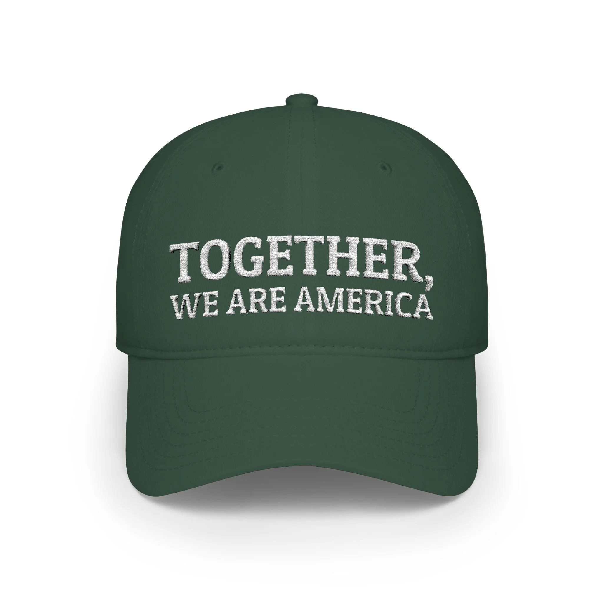 This low-profile baseball cap carries a quiet, heartfelt message embroidered across the front: “Together, We Are America". America is a melting pot, so let's welcome all people who want to live free and fairly. Its subdued silhouette and soft cotton twill make it feel lived-in from the first wear — the kind of cap you reach for when you want to move through your day with calm intention. Wear it running errands, on neighborhood walks, or to casual community gatherings where a gentle reminder matters more than loud slogans. The cap settles into your routine, signaling warmth and steady values without shouting for attention.